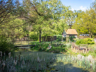 De ruim 3 hectare grote omsloten tuin, biedt diverse plekken om het gesprek dat u in een van onze ruimtes bent begonnen, buiten voort te zetten of om gewoon een wandeling in alle rust te maken. Ook wordt de tuin gebruikt voor bijzondere outdoor-workshops